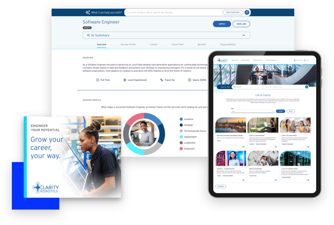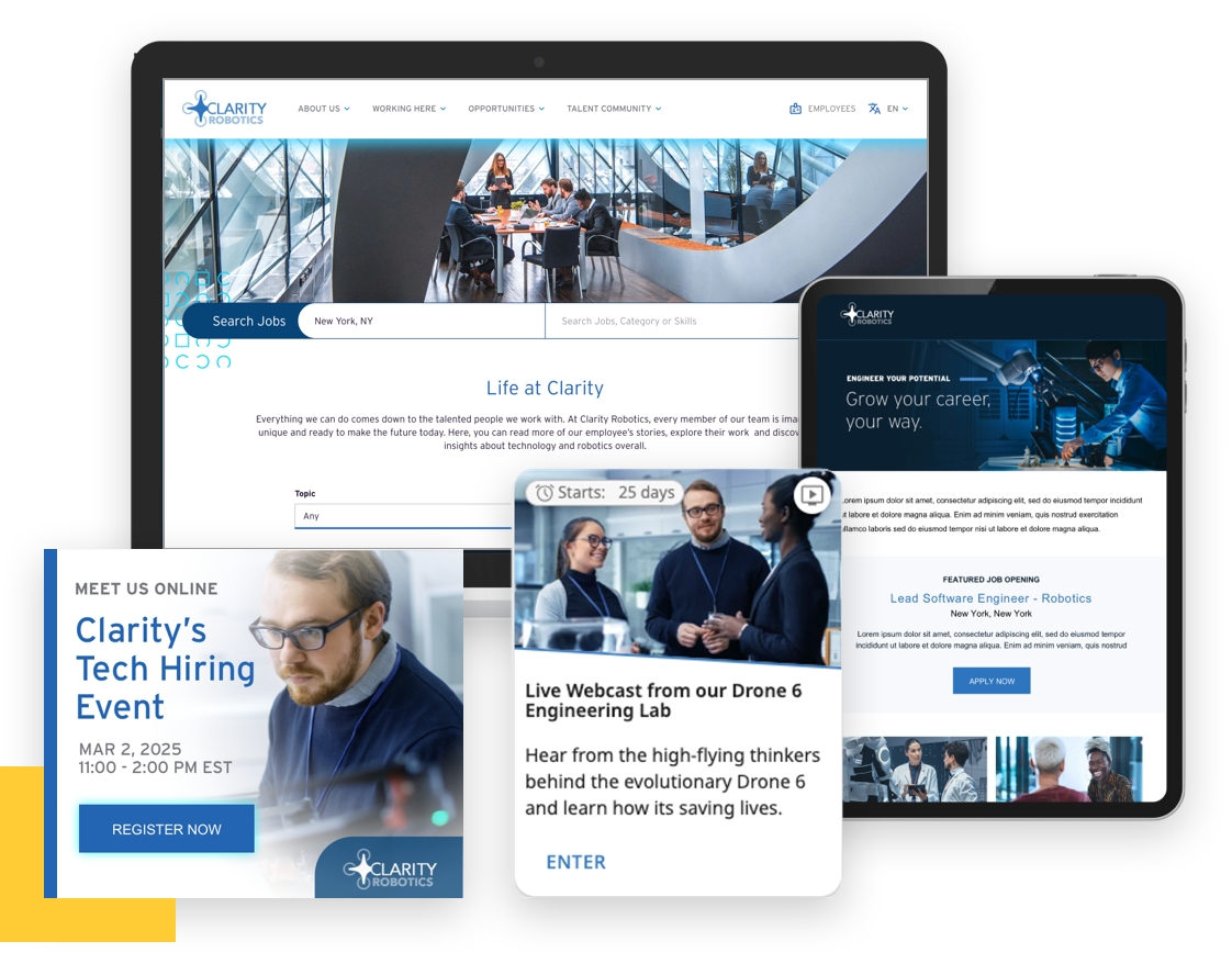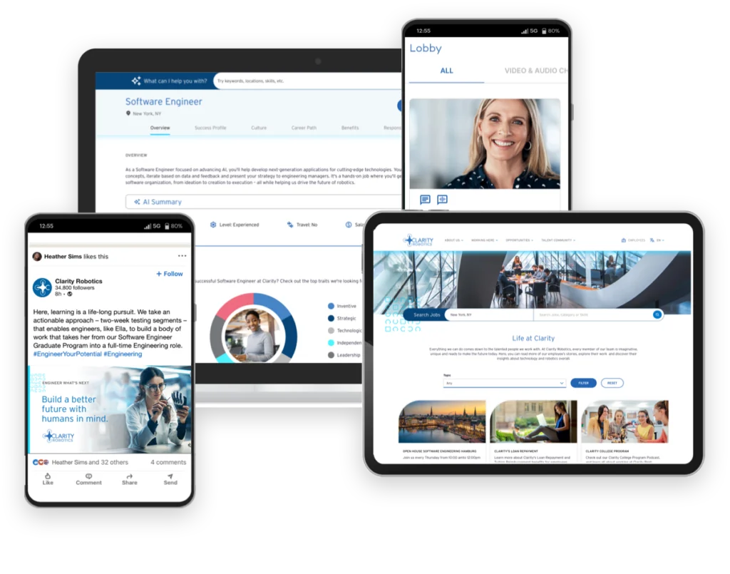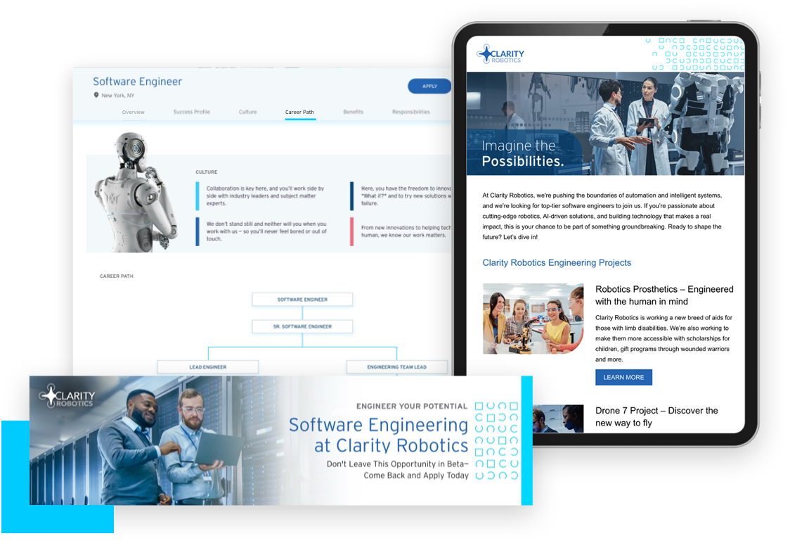 From Advanced Job Descriptions to Programmatic AdTech and CRM email templates, our BCX solution ensures seamless, audience-specific messaging across every candidate touchpoint. This means your brand message remains consistent and effective – whether on career sites, social platforms or job boards.