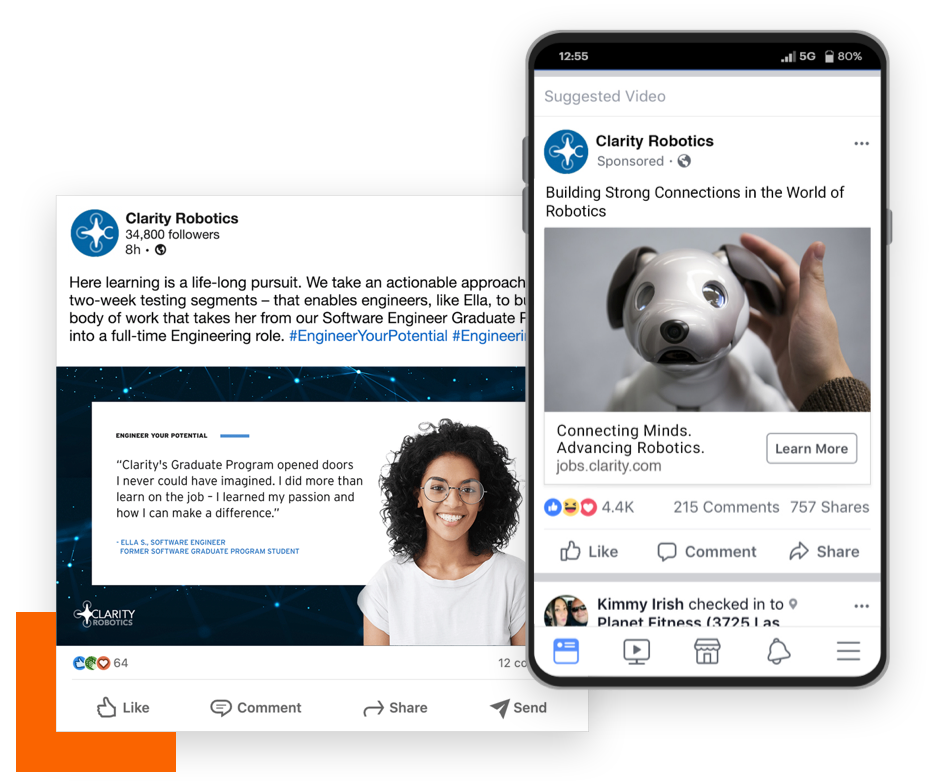 Strengthen your employer brand by creating authentic, data-informed content that sparks conversations and builds meaningful connections. Our social and content strategy helps your brand reach new audiences and attract the right talent.