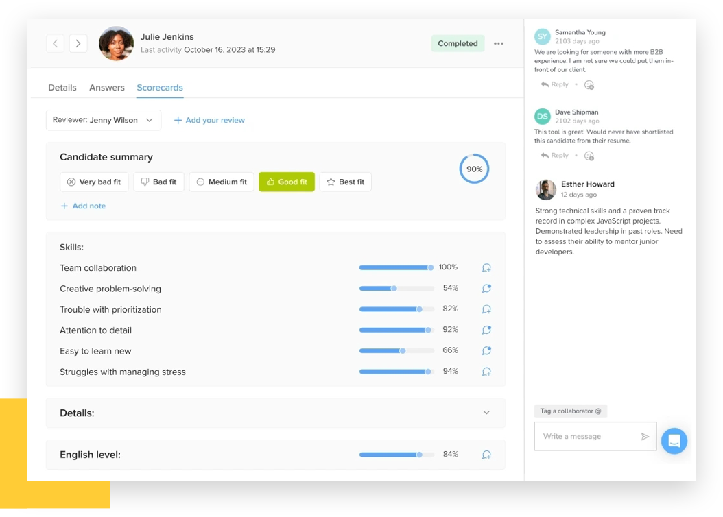 Leverage AI to score candidates in real-time, combining data from resumes, assessments and interviews for a holistic evaluation.