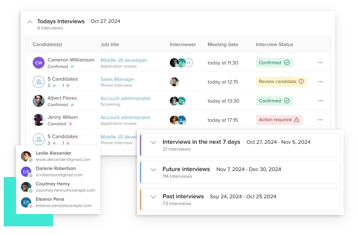 Seamlessly coordinate multiple interviewers’ schedules.