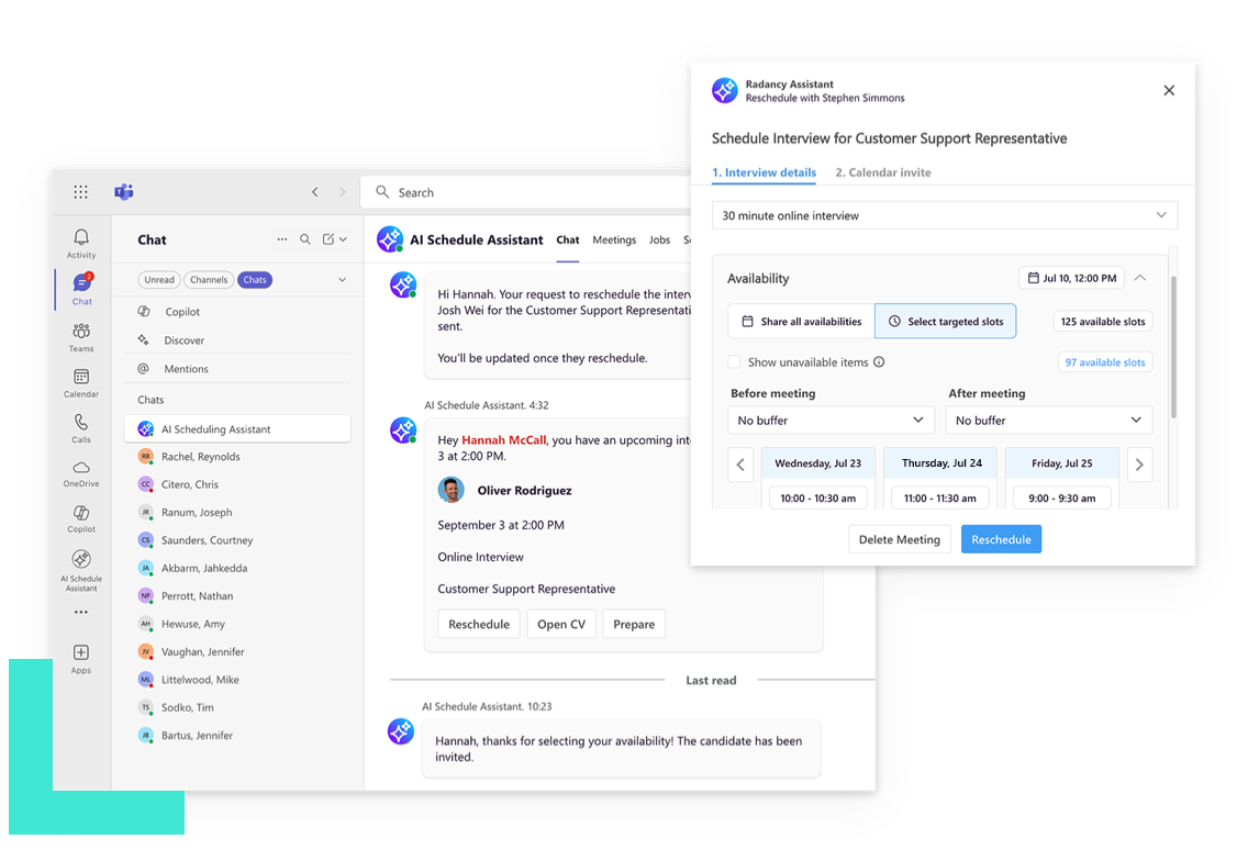Integre o agendamento de entrevistas diretamente no Microsoft Teams para alinhar os fluxos de trabalho